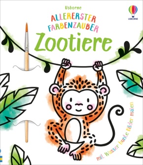 Nur mit Wasser können junge Künstler die schwarz-weißen Zootiere kunterbunt werden lassen und dabei den Umgang mit dem Pinsel üben! Großer Malspaß – ganz ohne Stifte!
